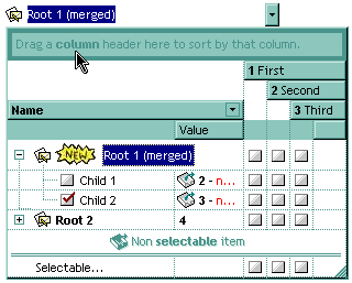 The SortOrder property adds or removes programmatically columns in the control's sort bar. Use the SortPosition property to specify the position of the column in the sorting columns collection. Use the ItemBySortPosition property to access the columns being sorted. Use the SortOnClick property to specify the action that control should execute when user clicks the column's header. Use the AllowSort property to specify whether the user sorts a column by clicking the column's header. The control fires the Sort event when the user sorts a column.