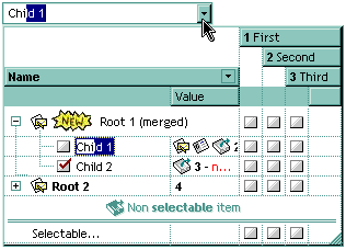 The control supports three styles: Simple, DropDown, and DropDownList. When the style is set to Simple, the list is always visible. When the style is set to DropDown or DropDownList, the list is shown only when the user presses the F4 key or clicks the drop-down button.Use the Key property assign a new key to open the drop down window when user presses a key. Use the Columns property to access the control's columns collection. Use the Items property to access the control's items collection. Use the DropDown method to show programmatically the drop down portion of the control. Use the AutoDropDown property to specify whether the user shows the drop down portion of the control. Use the Add method to add new columns to the control. Use the AddItem, InsertItem, PutItems, DataSource properties to add new items to the control. Use the BeginUpdate and EndUpdate methods to maintain performance while adding new columns and items. Use the Background property to change the drop down button's visual appearance.