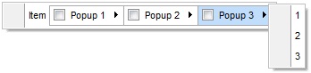 The following screen shot show items with ShowPopupOnChecked on False ( default ) ( please notice that all items display the popup-arrow ):