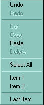 m_edit.SetAllowContextMenu( TRUE ); CString strCustom( "\r" ); strCustom += "Item 1"; strCustom += "\r\r"; strCustom += "Item 2"; strCustom += "\r"; strCustom += "Item 3"; m_edit.SetContextMenuItems( strCustom );