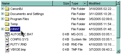 The following C++ sample selects the ''WINNT" folder: