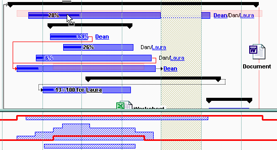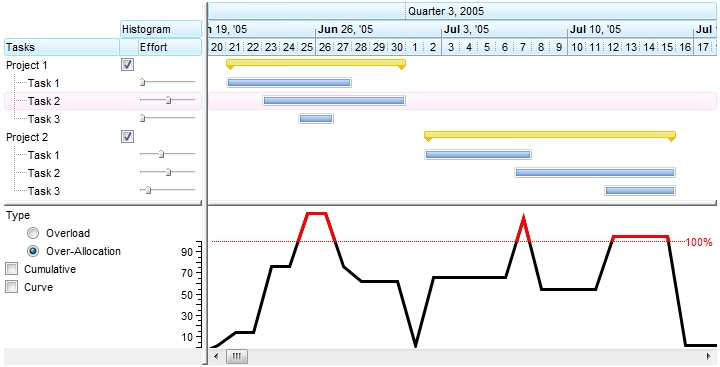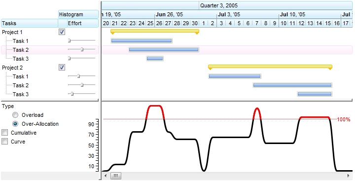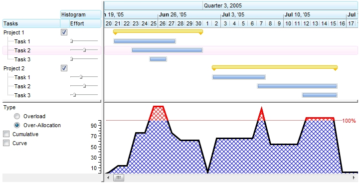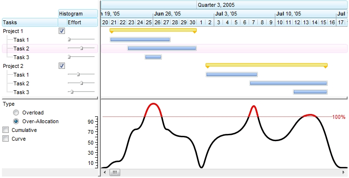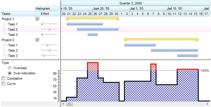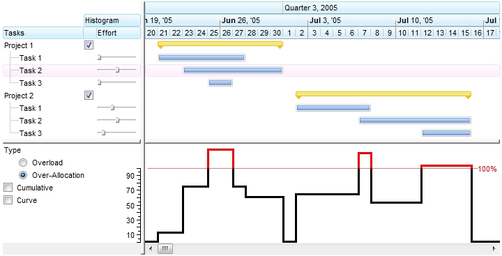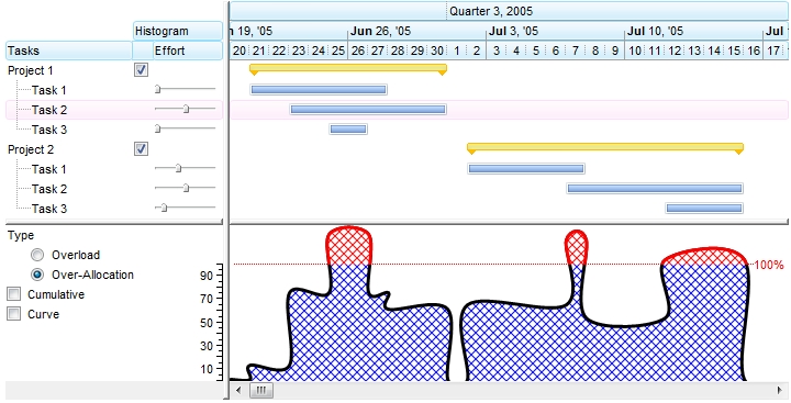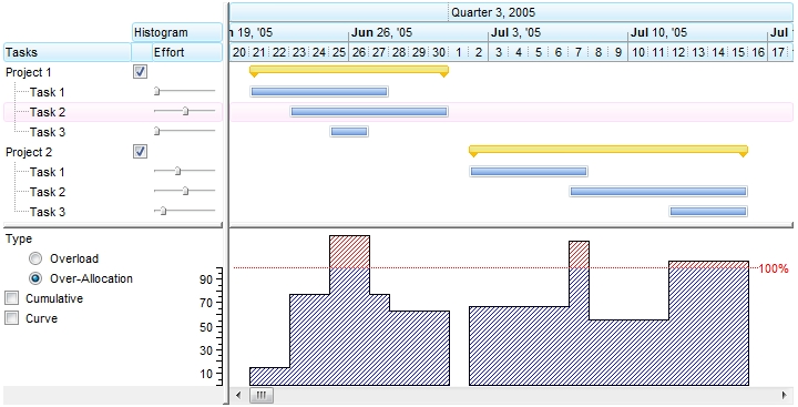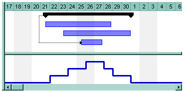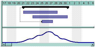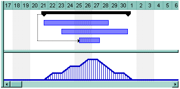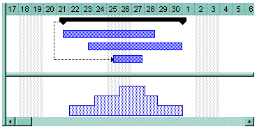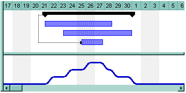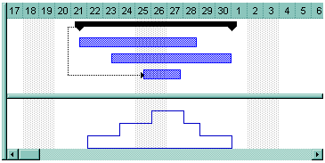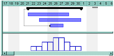 The following screen shot shows the bar's diagram if the HistogramColor property points an EBN object ( 0x01000000, defines the EBN object being used to show the task bars ). In case the HistogramColor property points to an EBN/Skin object ( the first 7 bites of the color are used ) the HistogramPattern property has no effect, so the EBN object is used to show the diagram.