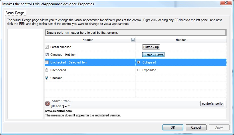 | String | A String expression that encodes the control's Visual Appearance. |