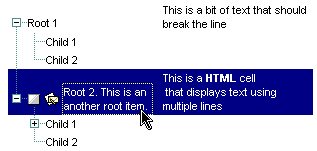 multiple lines" CellSingleLine(h,1) = False CellValueFormat(h,1) = 1 ItemHeight(h) = 42 h2= InsertItem(h,,"Child 1") h2= InsertItem(h2,,"Child 1") InsertItem(h,,"Child 2") ExpandItem(h) = True SelectItem(h) = True } EndUpdate