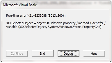 TemplateException is XXXSelectedObject = object # Unknown property / method / identifer / variable (XXXSelectedObject, System.Windows.Forms.PropertyGrid)