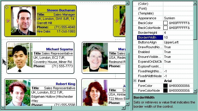 The control's client area excludes the size of the borders. Use the BorderWidth and BorderHeight properties to define the size of control's borders. The BorderWidth property is specified in pixels. By default, the BorderWidth property is 10 pixels. Use the FixedWidthNode property to specify the size of nodes. Use the Font property to specify the control's font. The ChartHeight property gets the height in pixels required to display the entire chart. The ChartWidth property gets the width in pixels required to display the entire chart.