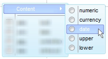 | Expression as String | The Expression parameter defines the format to be applied on the column or row. If the Expression is not valid, the FormatContent objects shows as disabled on the control's context menu. The value keyword defines the value to be converted, and the Expression supports a lot of predefined functions as shown here. | |||