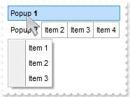 local var_Item as IItem local var_Items,var_Items1 as IItems var_Items := oDCOCX_Exontrol1:Items var_Item := var_Items:Add("Popup",2,100) var_Item:ShowPopupAlign := exShowPopupAlignDown var_Item:ShowPopupArrow := false var_Item:ShowPopupOffset := "-12,-48" var_Items1 := var_Item:Items var_Items1:PopupAppearance := RaisedBorder var_Items1:Add("Item 1",nil,nil) var_Items1:Add("Item 2",nil,nil) var_Items1:Add("Item 3",nil,nil) oDCOCX_Exontrol1:Refresh()