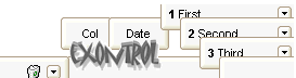 • copy of another skin with different coordinates, if it begins with "CP:" . For instance, you may need to display a specified skin on a smaller rectangle. In this case, the string starts with "CP:", and contains the following "CP:n l t r b", where the n is the identifier being copied, the l, t, r, and b indicate the left, top, right and bottom coordinates being used to adjust the rectangle where the skin is displayed. For instance, the "CP:1 4 0 -4 0", indicates that the skin is displayed on a smaller rectangle like follows. Let's say that the control requests painting the {10, 10, 30, 20} area, a rectangle with the width of 20 pixels, and the height of 10 pixels, the skin will be displayed on the {14,10,26,20} as each coordinates in the "CP" syntax is added to the displayed rectangle, so the skin looks smaller. This way you can apply different effects to your objects in your control. The following screen shot shows the control's header when using a "CP:1 -6 -6 6 6", that displays the original skin on larger rectanges .