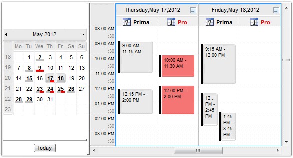 The following screen shot shows the dates with events when GroupHighlightEvent property is True: