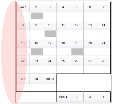 The following screen shot shows the control with no time scale ( the schedule view has been resized using the MIDDLE mouse button ):
