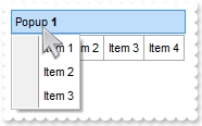 local var_Item as IItem local var_Items,var_Items1 as IItems var_Items := oDCOCX_Exontrol1:Items var_Item := var_Items:Add("Popup",2,100) var_Item:ShowPopupAlign := exShowPopupAlignDown var_Item:ShowPopupArrow := false var_Item:ShowPopupOffset := "-12,-48" var_Items1 := var_Item:Items var_Items1:PopupAppearance := RaisedBorder var_Items1:Add("Item 1",nil,nil) var_Items1:Add("Item 2",nil,nil) var_Items1:Add("Item 3",nil,nil) oDCOCX_Exontrol1:Refresh()