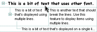 By default, the CellFont property is nothing. If the CellFont property is noting, the cell uses the item's font. Use the CellFont and ItemFont properties to specify different fonts for cells or items. Use the CellBold, CellItalic, CellUnderline, CellStrikeout, ItemBold, ItemUnderline, ItemStrikeout, ItemItalic or CellCaptionFormat to specify different font attributes. Use the Refresh method to refresh the control's content on the fly. Use the BeginUpdate and EndUpdate methods if you are doing multiple changes, so no need for an update each time a change is done. Use the ConditionalFormats method to apply formats to a cell or range of cells, and have that formatting change depending on the value of the cell or the value of a formula.