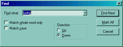The following screen shot shows the Find dialog: