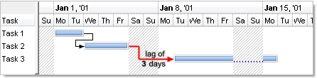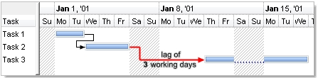 This property specifies the number of working days between two linked bars. The