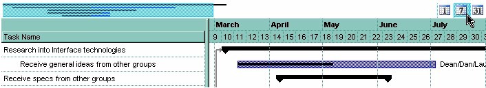 For instance, in the OverviewZoomCaption property is "Year|½Year|¼Year|<img>3</img>Month|Third|<img>2</img>Week|<img>1</img>Day|Hour|Min|Sec". The Day, Month and Week units displays an icon too. Use the Images method to load a list of icons to your control. Use the HTMLPicture property to use custom sized pictures to your HTML captions.