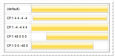 • An Windows XP theme part, if the Skin parameter starts with "XP:". Use this option, to display any UI element of the Current Windows XP Theme, on any part of the control. In this case, the syntax of the Skin parameter is: "XP:ClassName Part State" where the ClassName defines the window/control class name in the Windows XP Theme, the Part indicates a long expression that defines the part, and the State indicates the state of the part to be shown. All known values for window/class, part and start are defined at the end of this document. For instance the "XP:Header 1 2" indicates the part 1 of the Header class in the state 2, in the current Windows XP theme.