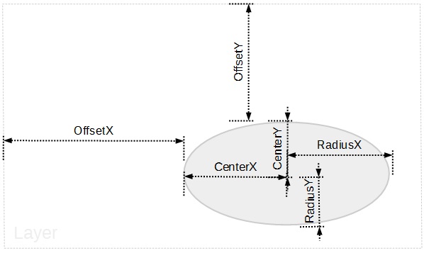 To define an elliptical clip region over the layer you can use any of the following properties: