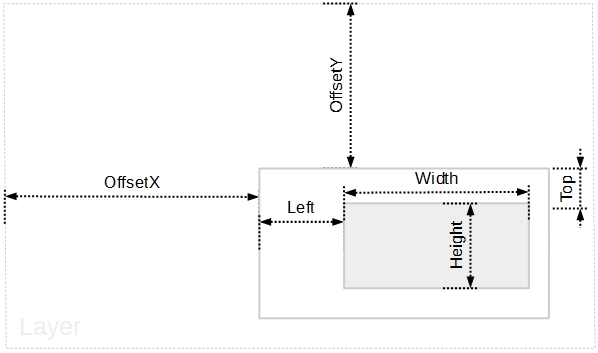 The following screen shot shows properties of the clipping objects relative to the layer (InverseClip property is False, by default):