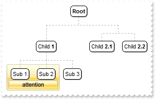 With Exchartview1 .BeginUpdate() .IndentSiblingY = 32 .VisualAppearance.Add(1,"gBFLBCJwBAEHhEJAADhABWMMACAADACAxRDAMgBQKAAzQFAYawdBgABoGUZ4JhUAIIRZGMIjFDcEwxC6NIpAWCYQDENAxAJCI4DBCAZBwGKPRiASQZUhmHIDTbIEBxf" & _ "IMIRLE6PZgjOYZchqRYZSjAdIzUAFFr1J4AKbfKJpfoKBJERrScgxeBUNAZBKlY7paoKSpSGw1CTLNoRAKoYTTBK2bbmWwoap2So1XhAdS0XJcWxfGKRbxmWaZZh+R5m" & _ "XpCMjVMAGGQPIa8MLCSwIJBaHqUQLZNixLStAyxHCtKKhG+vJwHL6BcqnPKKRqSUKcWbcQADFZdYTdNjbch1TWvSZVQSecSke7BQjGJQ2YxWcZUXReeaBDK9ZS4WK+Hh" & _ "RjqAZpCkeoNC8P4DDiWp3nYVwdkaSgrGGVhSnSHJum6CgGAiBIUA0JgziGVJkGWRgTiGBAiG+ZgyDYQhCgQJZbG+UIAGEFgGBEBw9FILJNAMXgMgOIJYD4EoEGESBCBY" & _ "VIKGMIJTCiDpDliNQ+A+eB+CGCAiCiFgkgmT54HCdoGE0MhgkAM4LhOWJ/CQThIk4NQik4I5+DgP5IDOBJ/B2TgDnwaQ3k+cR0l4P5jBOfguDOCIimCSgwCMKJuDsIRj" & _ "mkUJ/B8JBBkIRAYmQcRglwP5lAOfhNDKCAikSRgxE8WJyEQIJkEGdhHhuD5xlSXYQicMR0lsP5FBmXhoD+ZhTBgfQrgwMwUnQP5HikfoFhwZxxlYdwbW0CJaWKag8EuI" & _ "5oTufwwkeIoskIMYPDOfB0iOaZznwbw2GoKoQGaKQFjqEBQikBBjGCf4nCgShoLyTCZnIP5GlqOo5YgAxejyL4GAqeBWi+BI6ngQYvisY5+jMMBHHKHJAjIRoDFqPI0g" & _ "YOxSlIFptCERpSBGbQgn6SItmyUwAHaM4MgqXBljSLl7GANRuiuMBajsBQLEgRY0gOSxKmUP5uDuCpODIaxxgqbI/g+cR8lSQBwDEYpsBObpBBabAPG6S5yniM4HHKIJ" & _ "BDiT4TnyKQ6nEbBjBeRhPnKGwYCkMYCgcGAnnGDBSD+RIHhKKJDDmMRSkSbg/nKY58jAOxzCyUIuk0CpMlCKfXAyUwsdIEwMHxZ5TiieoSA6fQjEoLh0hKWxJC0NISks" & _ "SQsDSHQaFeUQIAKRJIDuT5DnyQ4tnWfR7GCLZMBqXI+i2S5KlyOvukOfxZDICAylSSg8jWUwyGmXYPnMNhpl6/sLg0gxjNBmNkRIQR3CRHMOQIYlwjBxHQH4T45hSBBG" & _ "O/sVgQRkv7EyO4P4mgeC5E+MsTIvBfgWD+PFBIFgvgaTaPwP4mxdA/CmNQOoWgci5FGJsLAqRYiKE0PgV4TQOh0EIHkQ4xw6DnBMLsb4Hx/AHEAHEdYpwIj2D+JwDwOR" & _ "fjjE+B0H4dA1ASKcK8UYnxzhXAyOsPQvhfgYDoPEQ4RwMBziqDYXY6g9AmFyCwMomwThxHkH0fA5x/jbHuJ8f4dxxj4D8Ecf41A+j8HMMoUgTBMjGG+Pgf4nx1j/EAFA" & _ "AwAggAIAYFQQ4WgEggDIAQgI=") With .Nodes .Add("Child <b>1</b>",,"1234") .Add("Sub 1","1234","AK1") .Add("Sub 2","1234","AK2") .Add("Sub 3","1234") .Add("Child <b>2.1</b>").AddGroup("Child <b>2.2</b>") End With With .Frames.Add("AK1,AK2") .set_Padding(exontrol.EXORGCHARTLib.PaddingEdgeEnum.exPaddingAll,8) .set_Padding(exontrol.EXORGCHARTLib.PaddingEdgeEnum.exPaddingBottom,22) .BackColor32 = &H1000000 .Pattern.Type = exontrol.EXORGCHARTLib.PatternEnum.exPatternEmpty .BackgroundExt = "top[4],left[4],right[4],client,bottom[4],bottom[16,back=0x01000000,text=`<sha ;;0>attention`,align=0x11]" End With .EndUpdate() End With