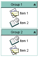 By default, the SmallIcons property is True. Use the SmallIcons property to specify the size of icons being used. If the SmallIcons property is True, the control displays 16x16 size icons. If the SmallIcons property is False, the control displays 32x32 size icons. Use the Image property to assign an icon or a custom size picture to the item. Use the Image property to assign an icon or a custom size picture to the group. Use the Images property to assign an image list to the control. Use the Refresh method to update the control. Use the GroupHeight property to specify the height of the captions for all groups. Use the ItemHeight property to specify the height of the items inside the group. Use the ShowImageList property to show the control's images list at runtime.