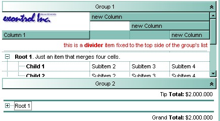 The following sample adds a divider item that's locked to the top side of the first group in the control: ( Before running this sample please make sure that your control contains groups objects ):