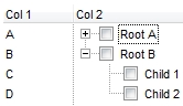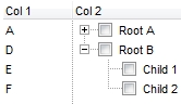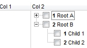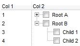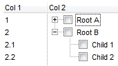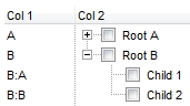 local var_Column as IColumn local var_FaceTree as IFaceTree local var_Items,var_Items1,var_Items2 as IItems oDCOCX_Exontrol1:BeginUpdate() var_FaceTree := oDCOCX_Exontrol1:FrontFace:CreateTree() var_FaceTree:ItemPadding := 10 var_FaceTree:LinesAtRoot := exGroupLines var_FaceTree:DrawGridLines := exRowLines var_FaceTree:Columns:Add("Default"):Alignment := LeftAlignment var_Column := var_FaceTree:Columns:Add("Pos") var_Column:Position := 0 var_Column:Alignment := LeftAlignment var_Column:FormatColumn := "1 rpos ``" var_Column:Width := 24 var_Items := var_FaceTree:Items var_Items1 := var_Items:Add("Root 1"):Items var_Items1:Add("Child 1") var_Items1:Add("Child 2") var_Items1:Add("Child 3") var_Items2 := var_Items:Add("Root 2"):Items var_Items2:Add("Child 1") var_Items2:Add("Child 2") var_Items2:Add("Child 3") var_Items:ExpandAll() oDCOCX_Exontrol1:EndUpdate()