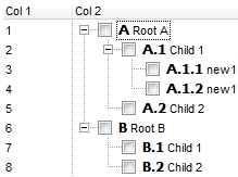 With Extreecube1 .BeginUpdate() With .FrontFace.CreateTree() .ItemPadding = 10 .LinesAtRoot = exontrol.EXTREECUBELib.LinesAtRootEnum.exGroupLines .DrawGridLines = exontrol.EXTREECUBELib.GridLinesEnum.exRowLines .Columns.Add("Default").Alignment = exontrol.EXTREECUBELib.AlignmentEnum.LeftAlignment With .Columns.Add("Pos") .Position = 0 .Alignment = exontrol.EXTREECUBELib.AlignmentEnum.LeftAlignment .FormatColumn = "1 rpos ``" .Width = 24 End With With .Items With .Add("Root 1").Items .Add("Child 1") .Add("Child 2") .Add("Child 3") End With With .Add("Root 2").Items .Add("Child 1") .Add("Child 2") .Add("Child 3") End With .ExpandAll() End With End With .EndUpdate() End With